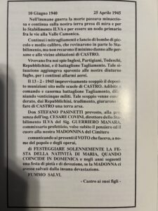 Durante la Seconda guerra mondiale con il progressivo spostamento verso nord del fronte, il paese di Castro fu più volte interessato da episodi bellici .